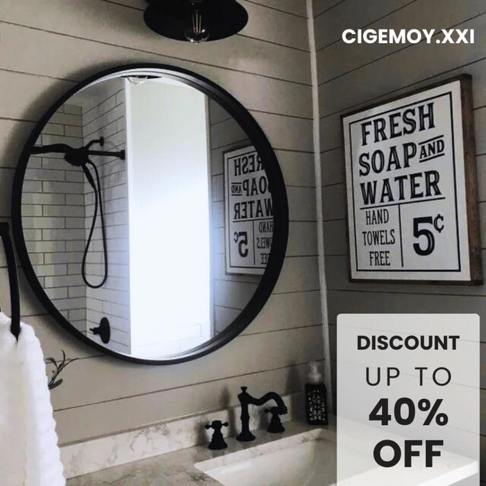 Cermin Bulat Dinding Aesthetic Frame Hitam Putih [GARANSI 100%] FREE PACKING KAYU & BUBBLE - Hitam D30