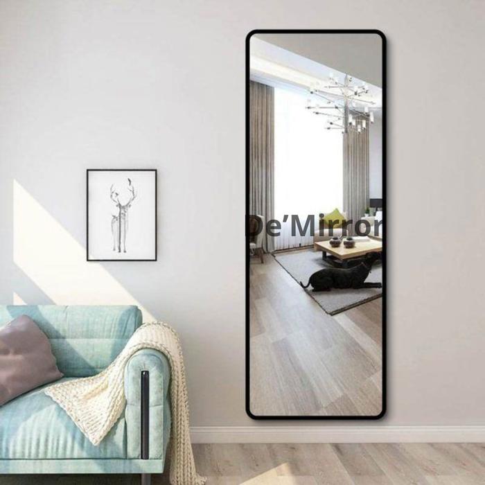 Kaca Cermin Gantung Sudut Rounded Dengan List Karet Hitam Ukuran 150x385 CM - 150x38.5 Rounded List Hitam