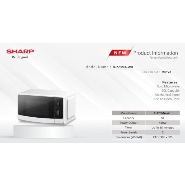 SHARP MICROWAVE R220MA-WH 20 LITER LOW WATT