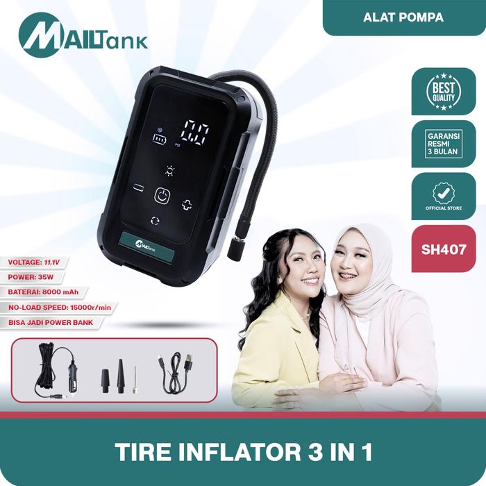 Mailtank Sh407 Pompa Elektrik 3 In 1 Ban Portable Multifungsi Inflation Pump Bisa Pompa Ban Motor Dan Mobil , Powerbank