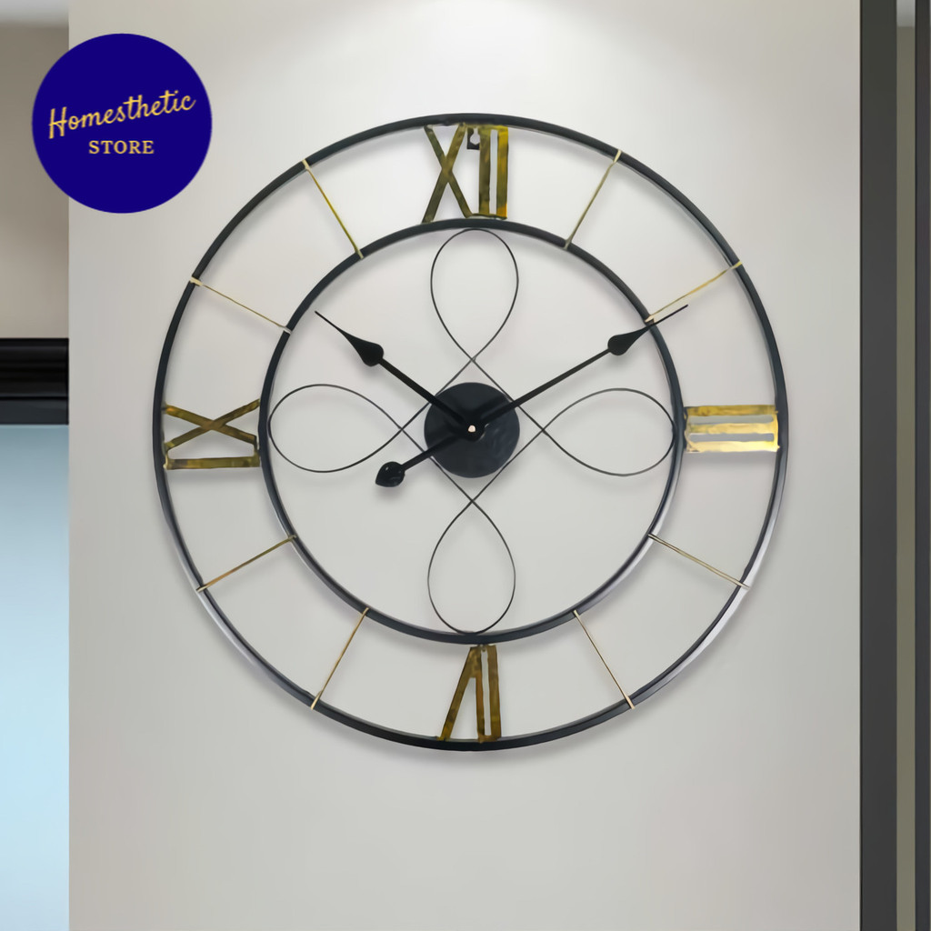 Jam Dinding Besi Metal Model Bulat Nordic Antique Clock Silent Movement 60 cm Bergaya Retro Vintage Angka Romawi Aesthet