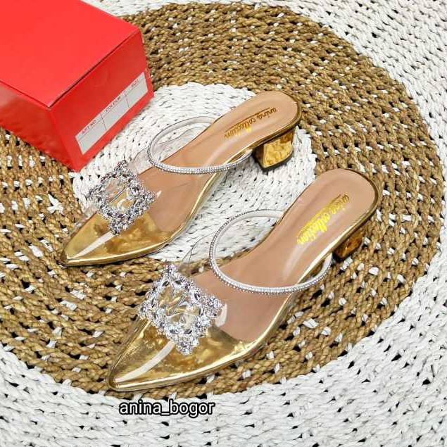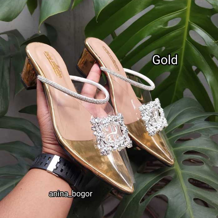 Sepatu Heels Pesta Wanita Terbaru Mika Kaca Transparan Tali Mutiara Tinggi 5 Cm