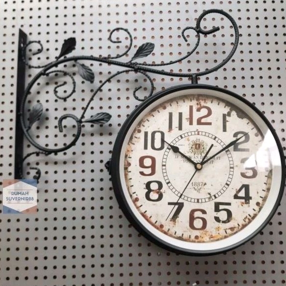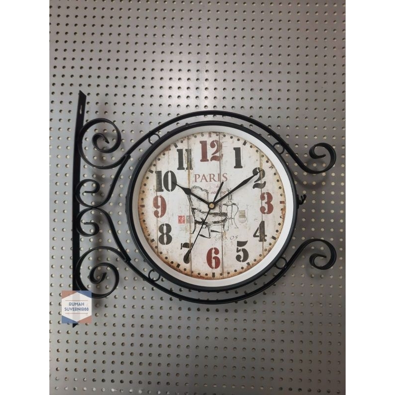 Jam Gantung 2 Sisi Shabby Garden VIntage Wall Clock Two Side
