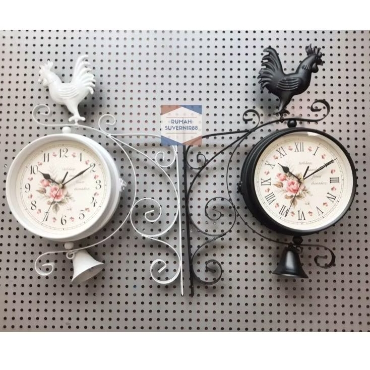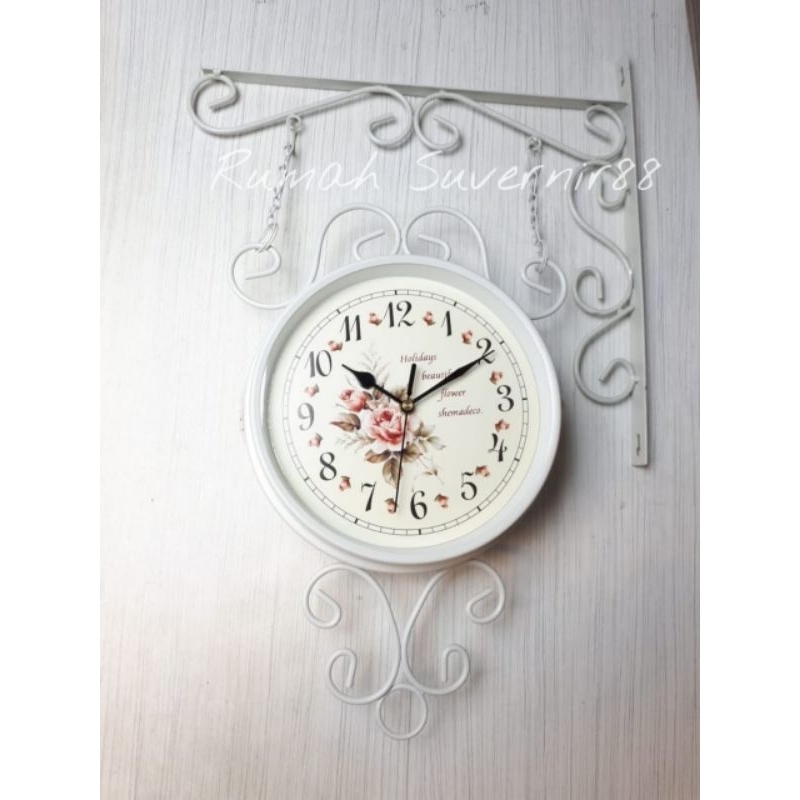 Jam Gantung 2 sisi Shabby Vintage Garden Wall Clock