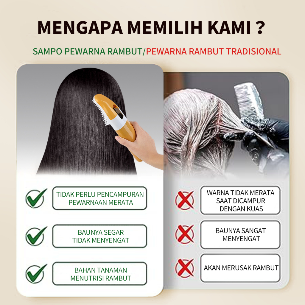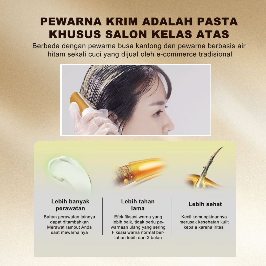 CrownCare Pewarna Rambut 200ML - Hair Color Cream Herbal, Menutup Uban dengan Cepat, Warna Tahan Lama & Efek Alami, deng