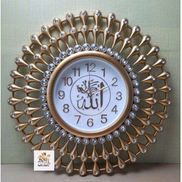 Jam Dinding Merak 55 Cm Lafadz Kaligrafi Gold Wall Decor Clock