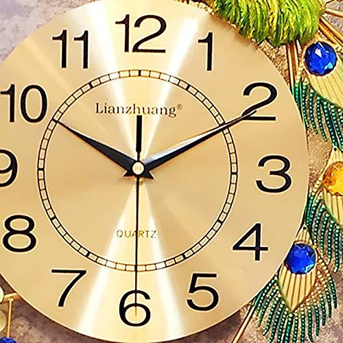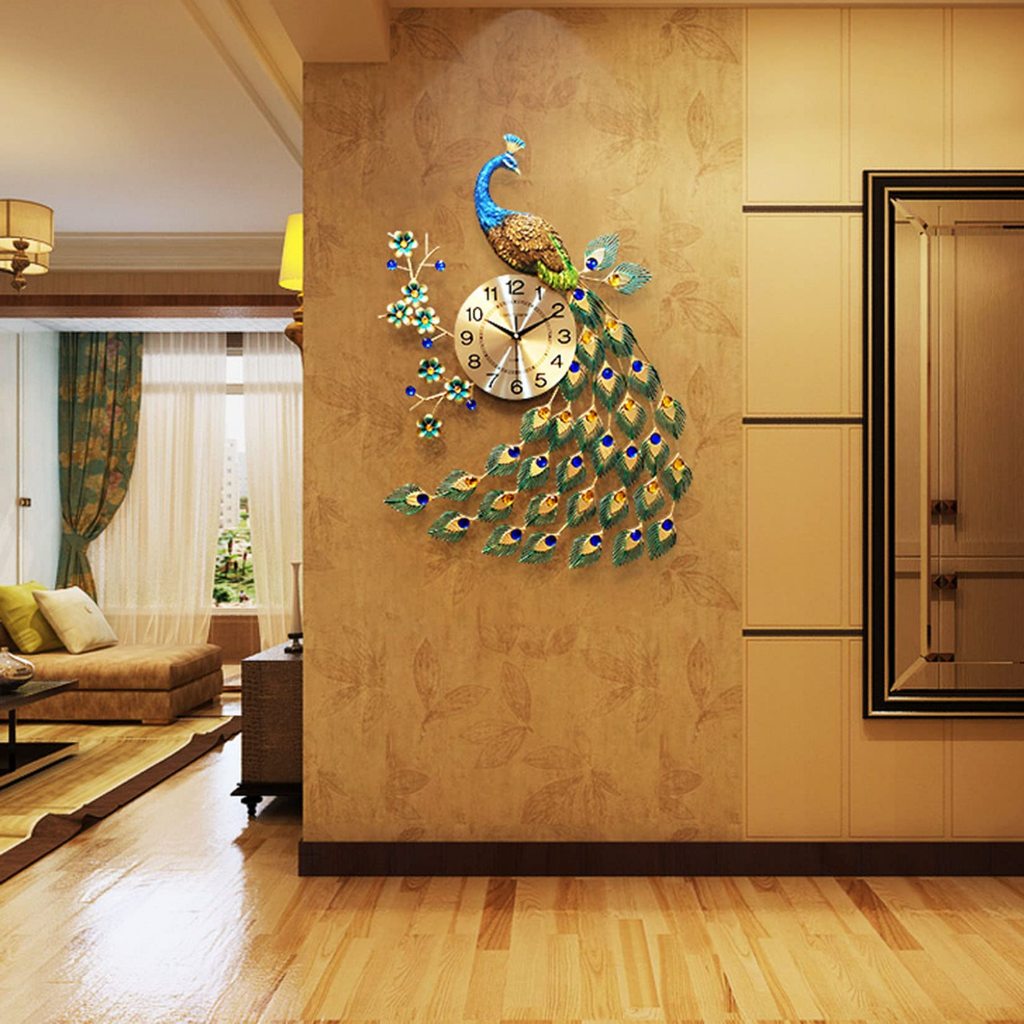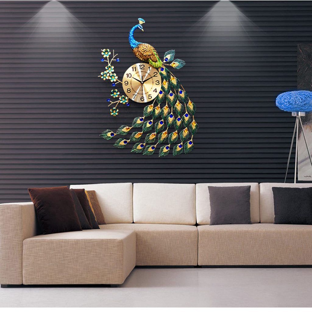 75*65CM Jam Dinding Besar Merak Ruang Tamu Jam Dinding Mode Bisu Logam Jam Dinding Dekoratif Bergaya Atmosfer
