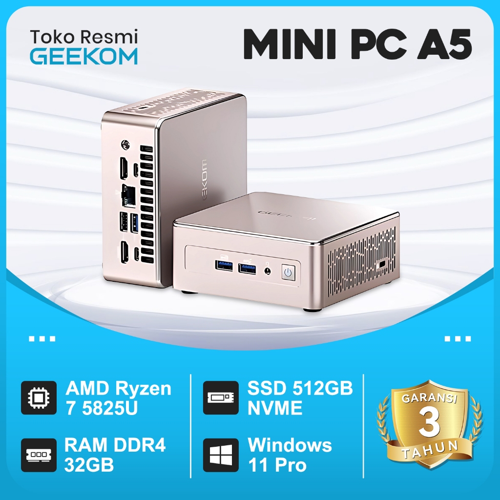 Mini PC Geekom Gaming A5 AMD Ryzen 7 5825U RAM 32GB DDR4 512SSD Windows 11 Pro 6 Upgradeable PC