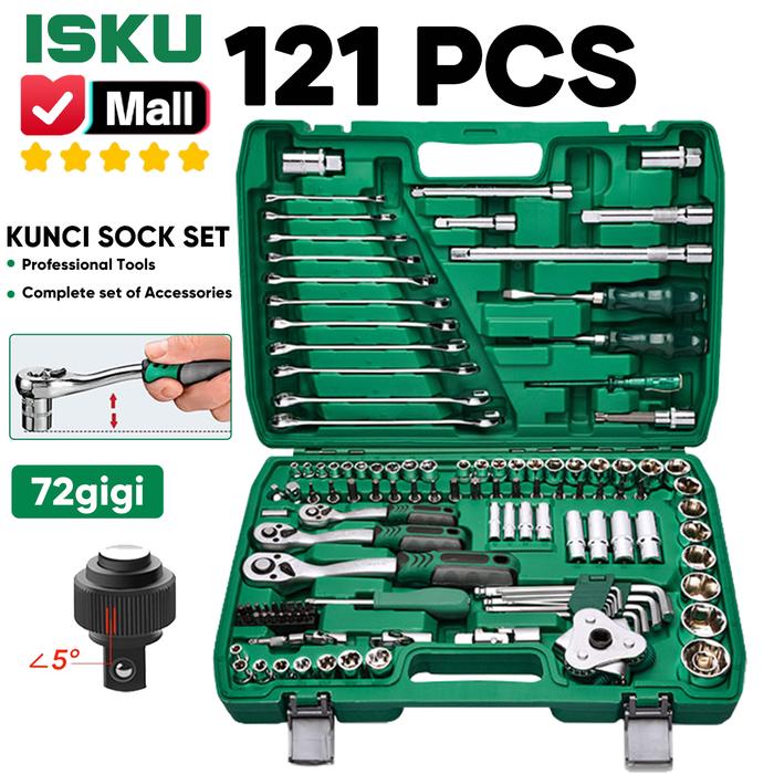 Isku Tool Set 121 Pcs Kunci Sok Set Lengkap Cr-V - Ratchet 1/2 3/8 1/4 + Kunci Filter Oli Mobil - 187Pcs