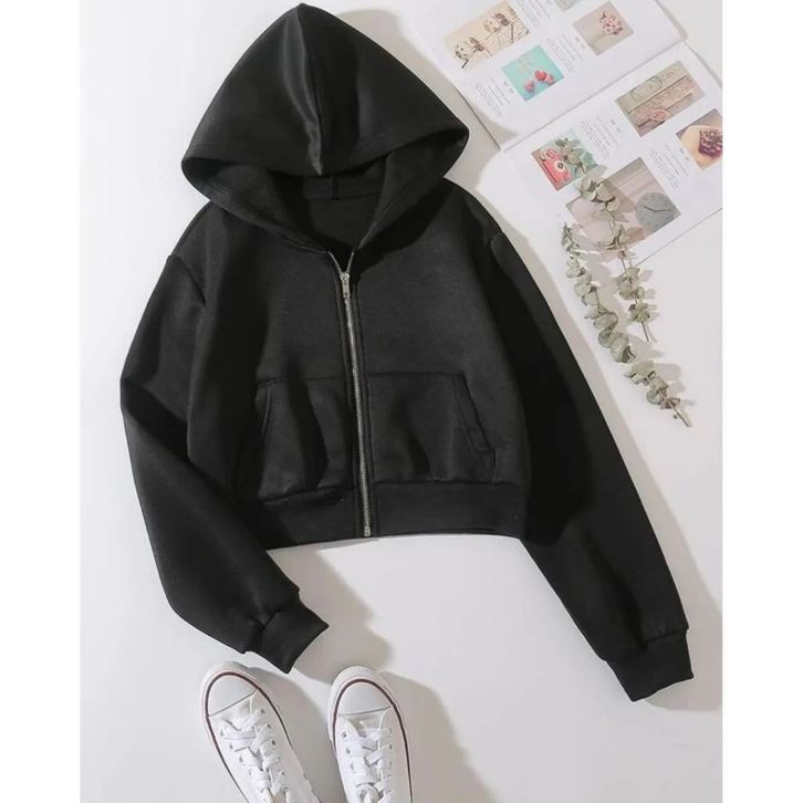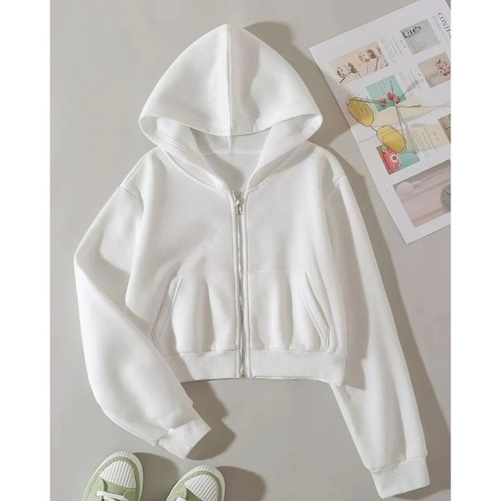 Hoodie Crop Top Zipper Wanita kekinian Jaket Sweater Basic Korean Style Kualitas Terbaik