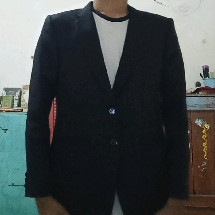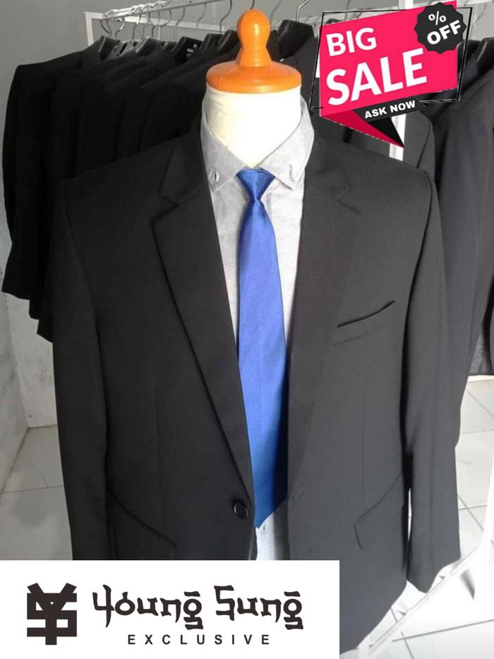 Youngsung - Jas Pria Hitam Formal Slim Fit Wisuda Kantor Blazer Semi Casual - S