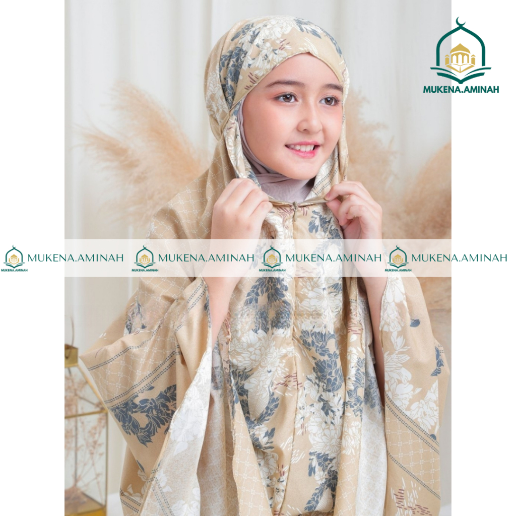 Mukena Anak Tanggung Azura Hasya 2In1 Resleting Travel Katun Motif