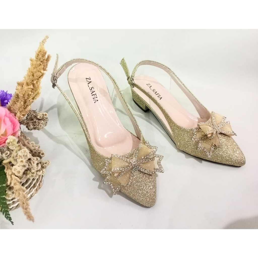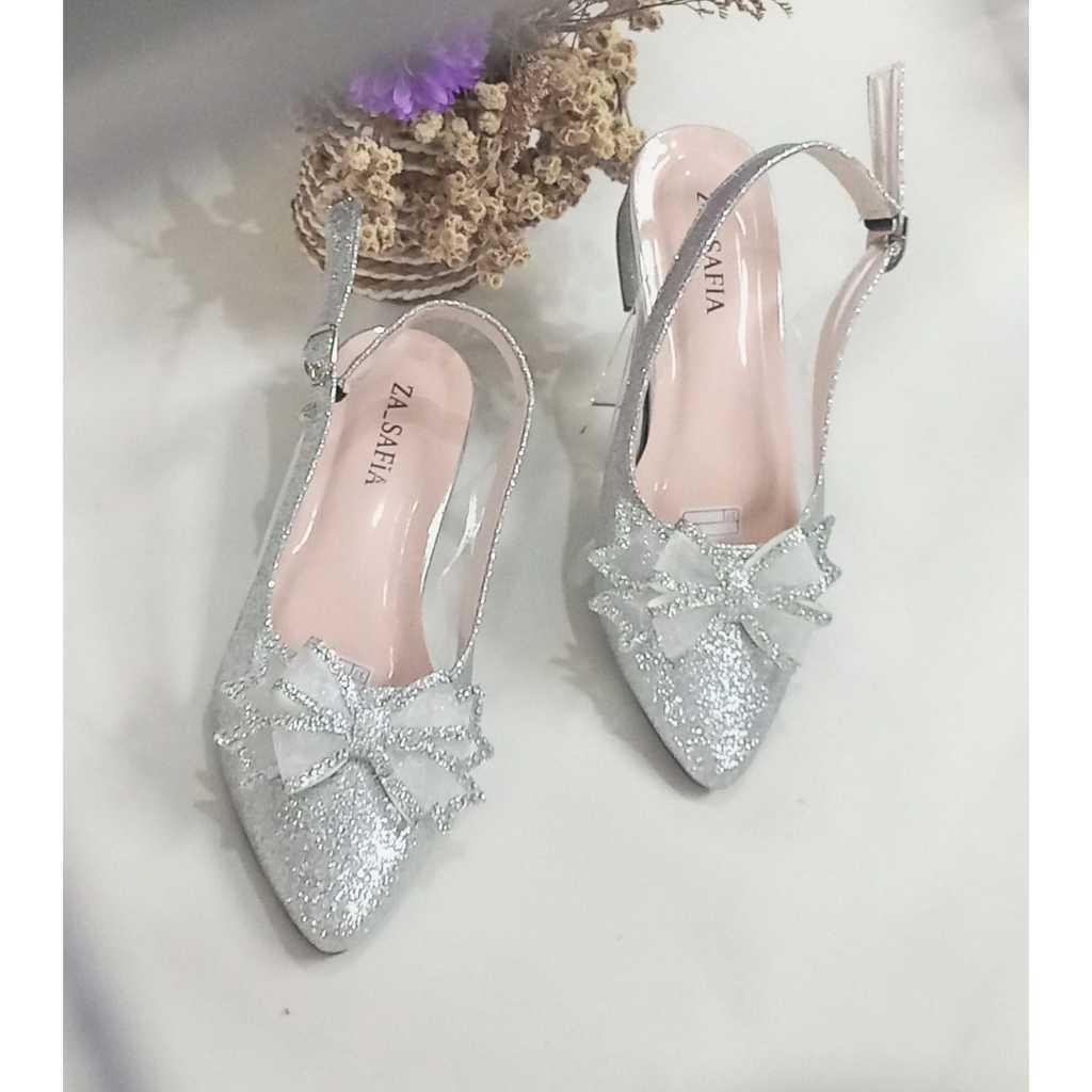 Sepatu Heels Wanita Elegan 3 Cm Pita Glitter