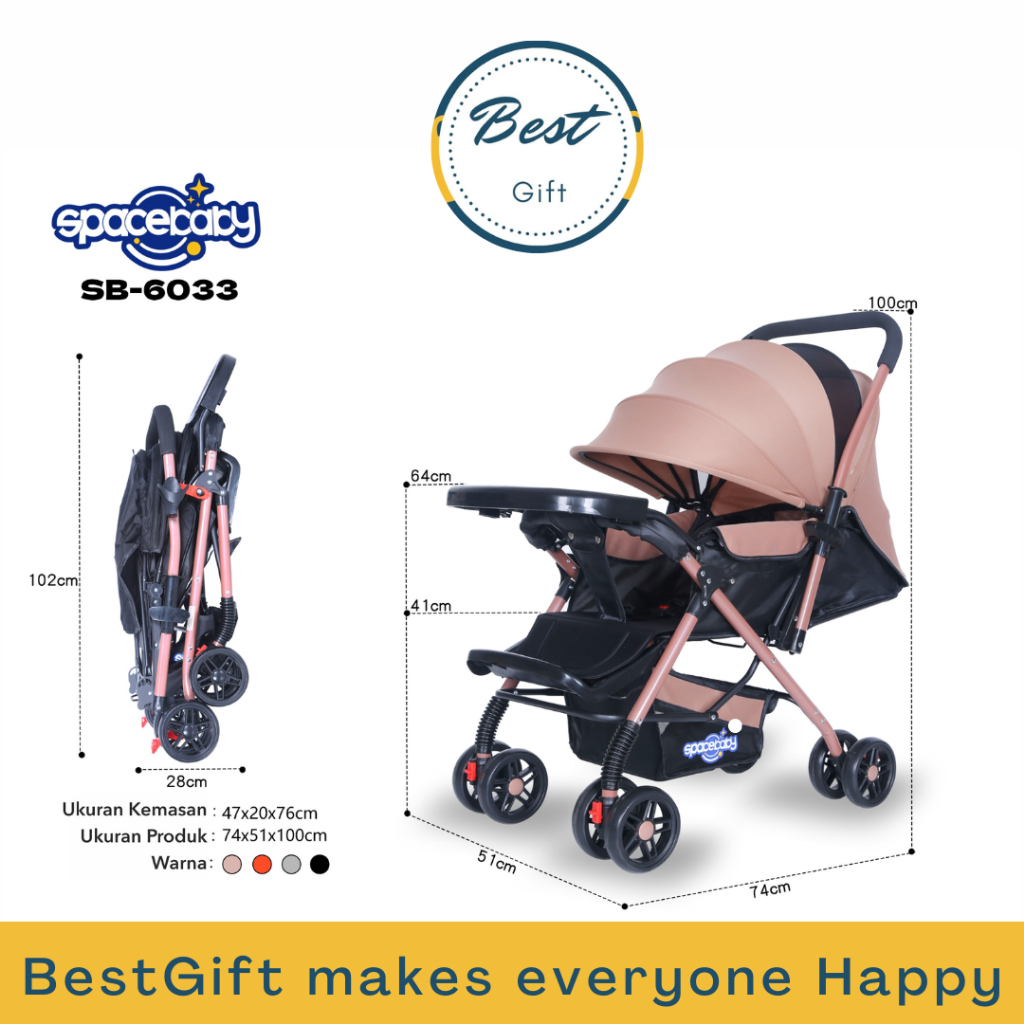 Spacebaby Baby Stroller Reversible Stir XL Roda Besar Arah SB-6055