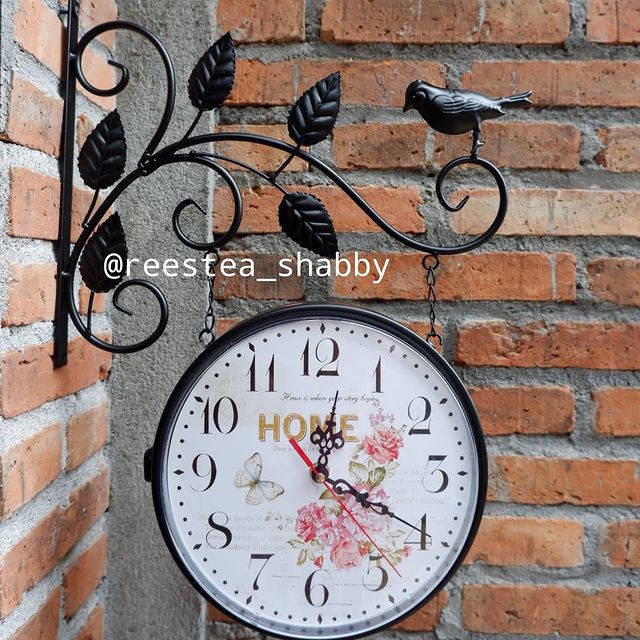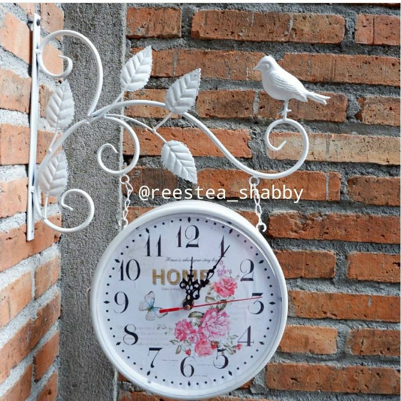 Jam dinding gantung import model burung shabbychic / dua sisi / bolak-balik /jam besi