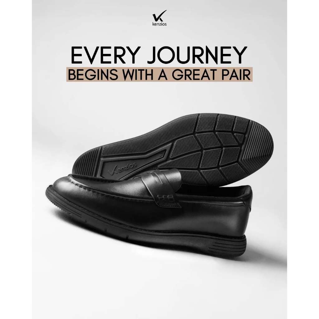 Kenzios BEZOS Black Series Sepatu Formal Loafer Slip On Pria Kulit Asli