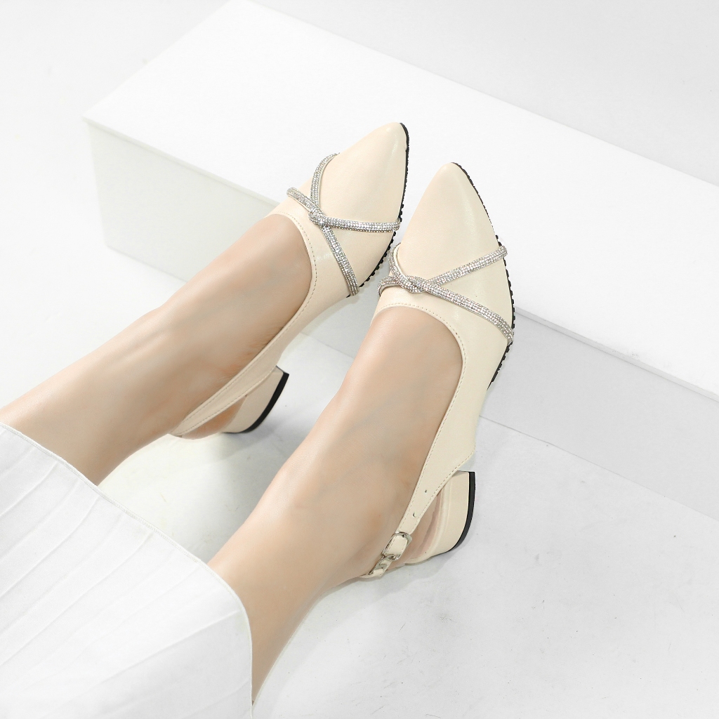 Sandal Wanita Heels Mules Hak 3Cm Elegan Kekinian