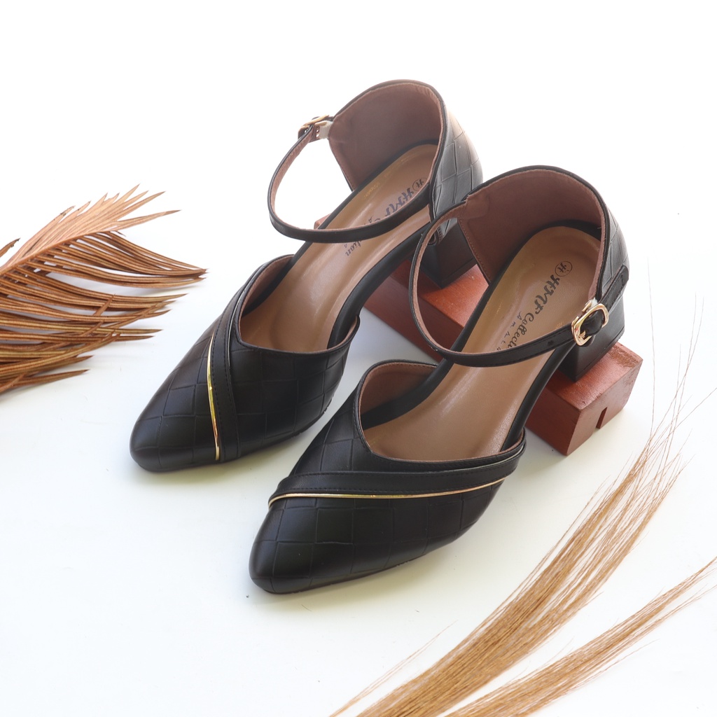 Sepatu Heels Mules Wanita Kulit Sintetis