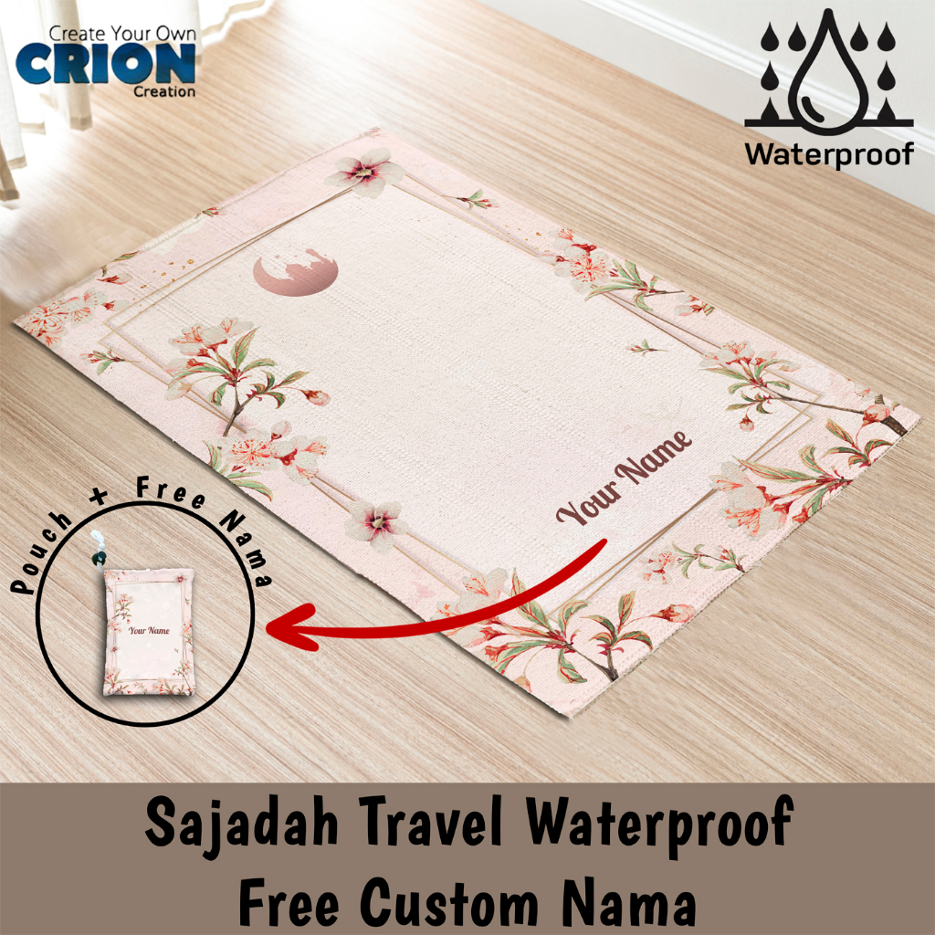 Sajadah Travel Waterproof Anak / Bisa Custom Nama / Flower frame - By Crion