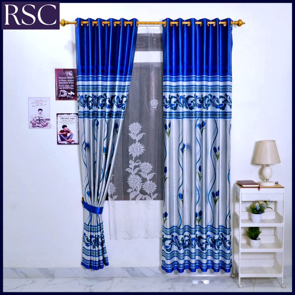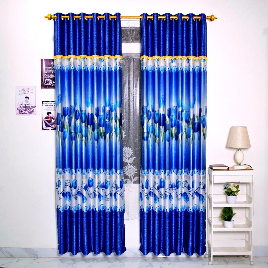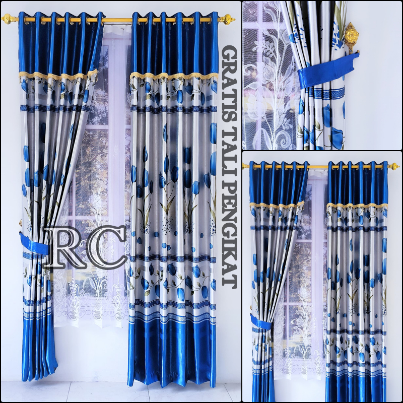 Gorden poni tempel pintu kamar kain blackout import tebal motif bunga tulip mewah model smokring