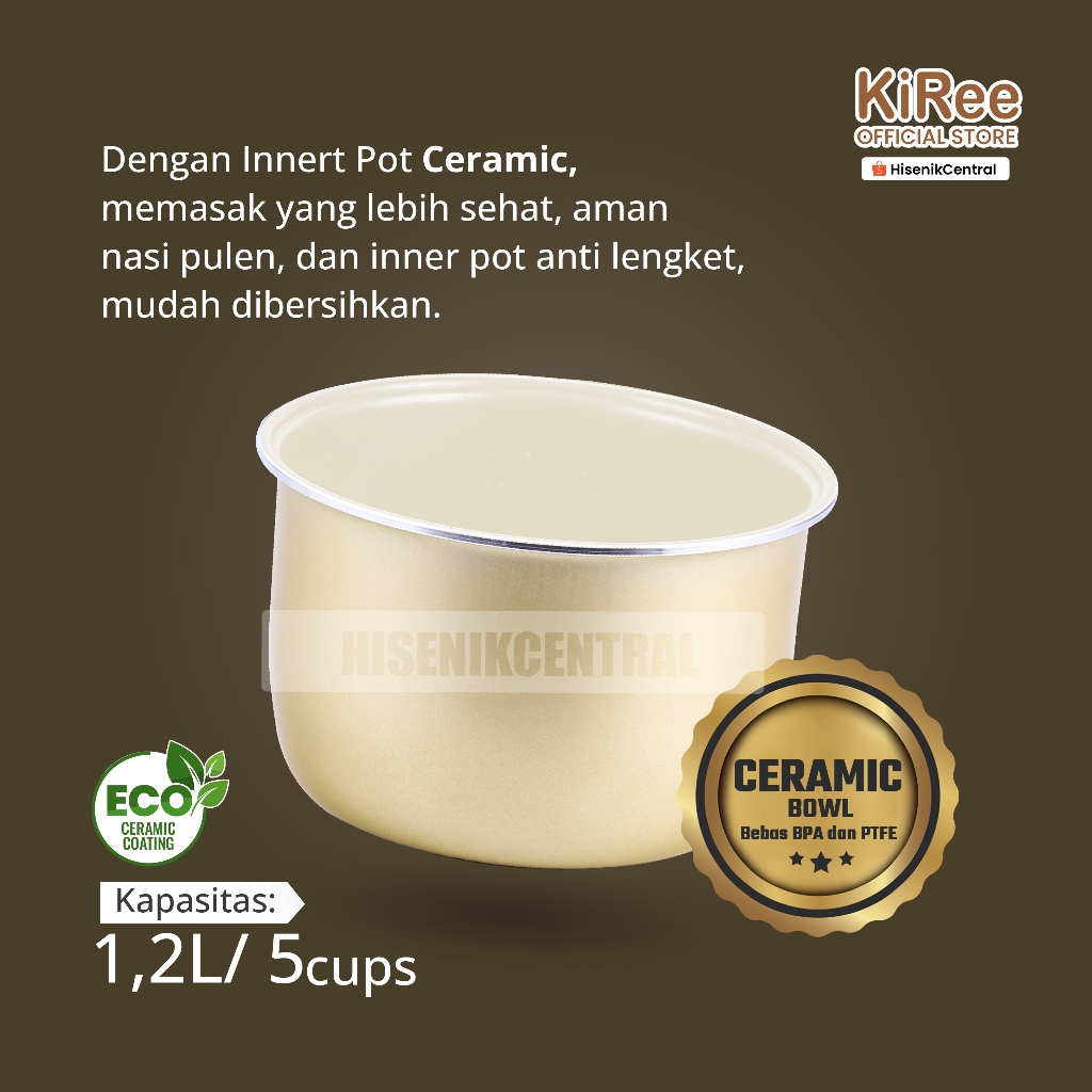 KiRee Mini Rice Cooker Low Sugar Digital Multi Cooker Low Carbo Eco Ceramic Inner Pot Magic Com LED Panel Kapasitas 1,2L 12 Fungsi Menu Garansi Resmi
