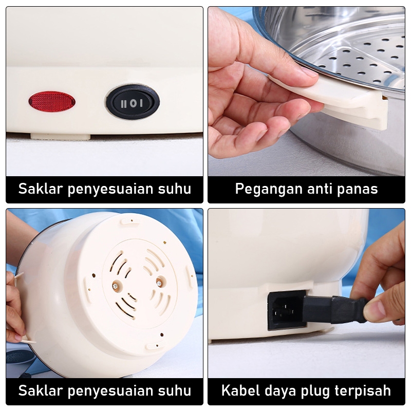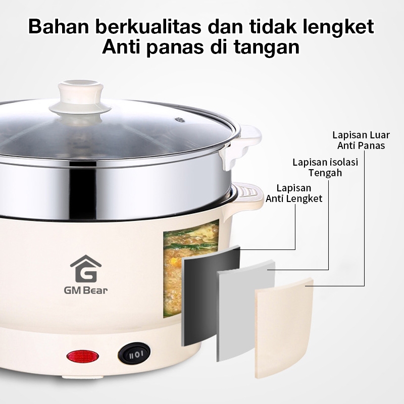 GM Bear Panci Listrik Multifungsi (2in1) 1225 - Electric Cooking Pot Panci Listrik Serbaguna Free Steamer