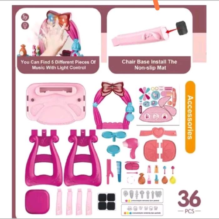 Mainan anak make up meja rias dresser Make Up Desk Beautician (36 Pcs) Lampu