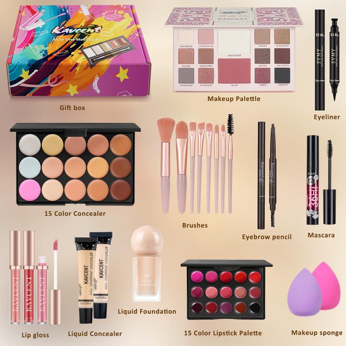 KAVCENT Paket Beauty Spesial 22 in 1 Makeup Set Lengkap Eksklusif untuk Hadiah Wanita Cantik - 16 in 1 Kotak Bedak