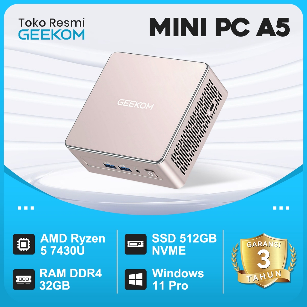Geekom PC Mini A5 Ryzen 5 7430U RAM 32GB DDR4 512SSD NVME Windows 11 Pro Gaming Mini PC Upgradeable