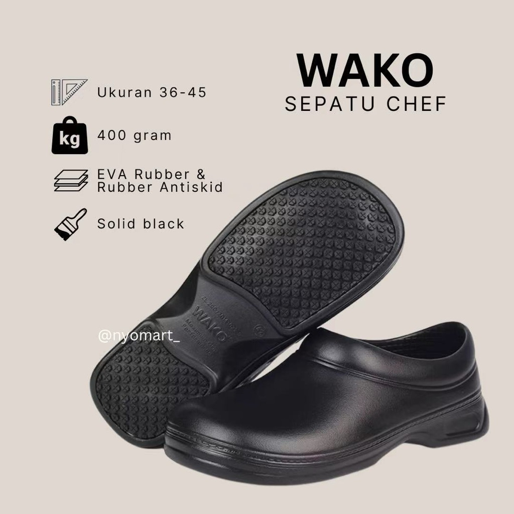 WAKO chef shoes ORI100 PERSENAnti-Slip dan Oil resistant Sepatu Kitchen Pria safety Design Clog