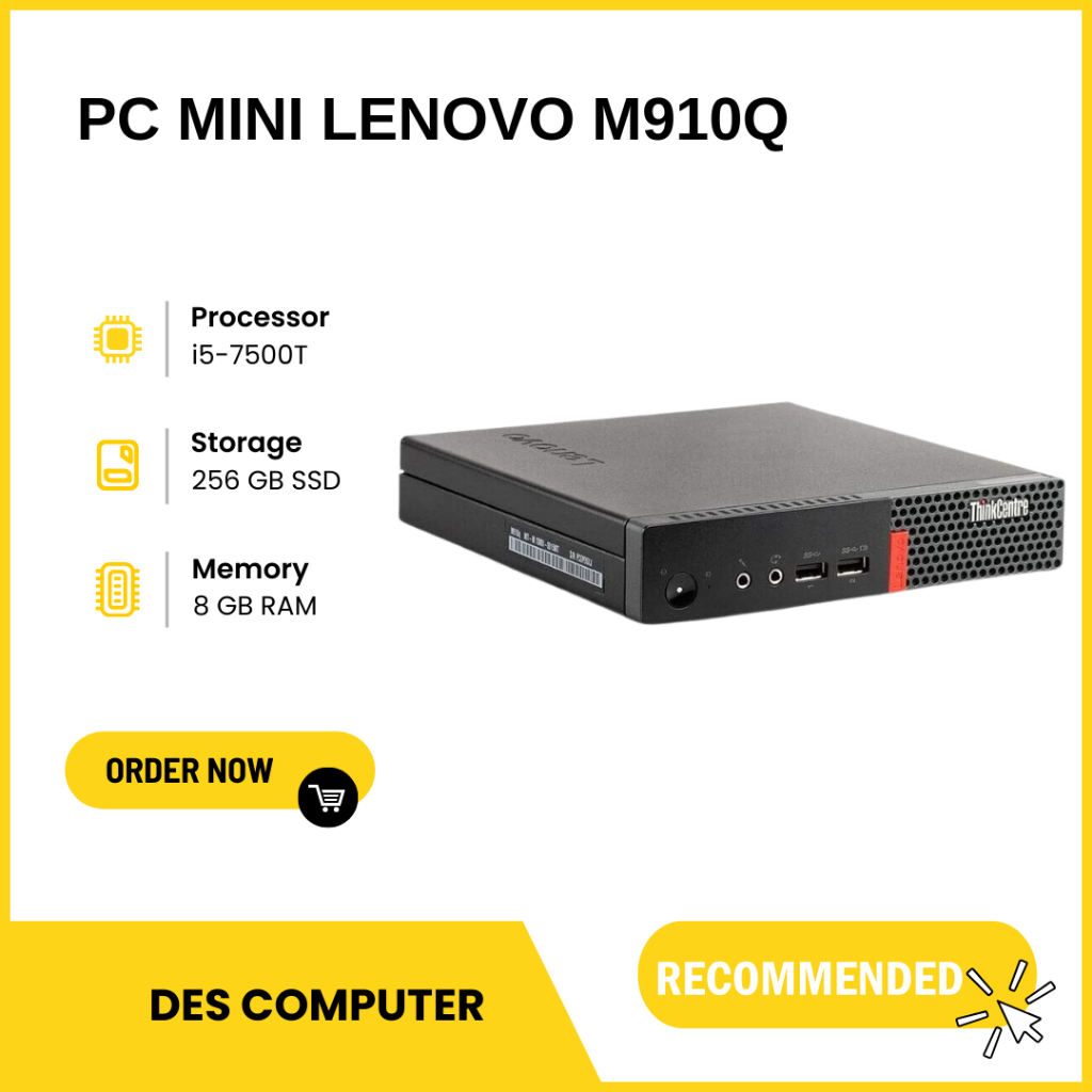 Pc Computer Mini merek Lenovo M710Q/M910Q Core i5 7500t Ram 8Gb Ssd 256Gb Murah