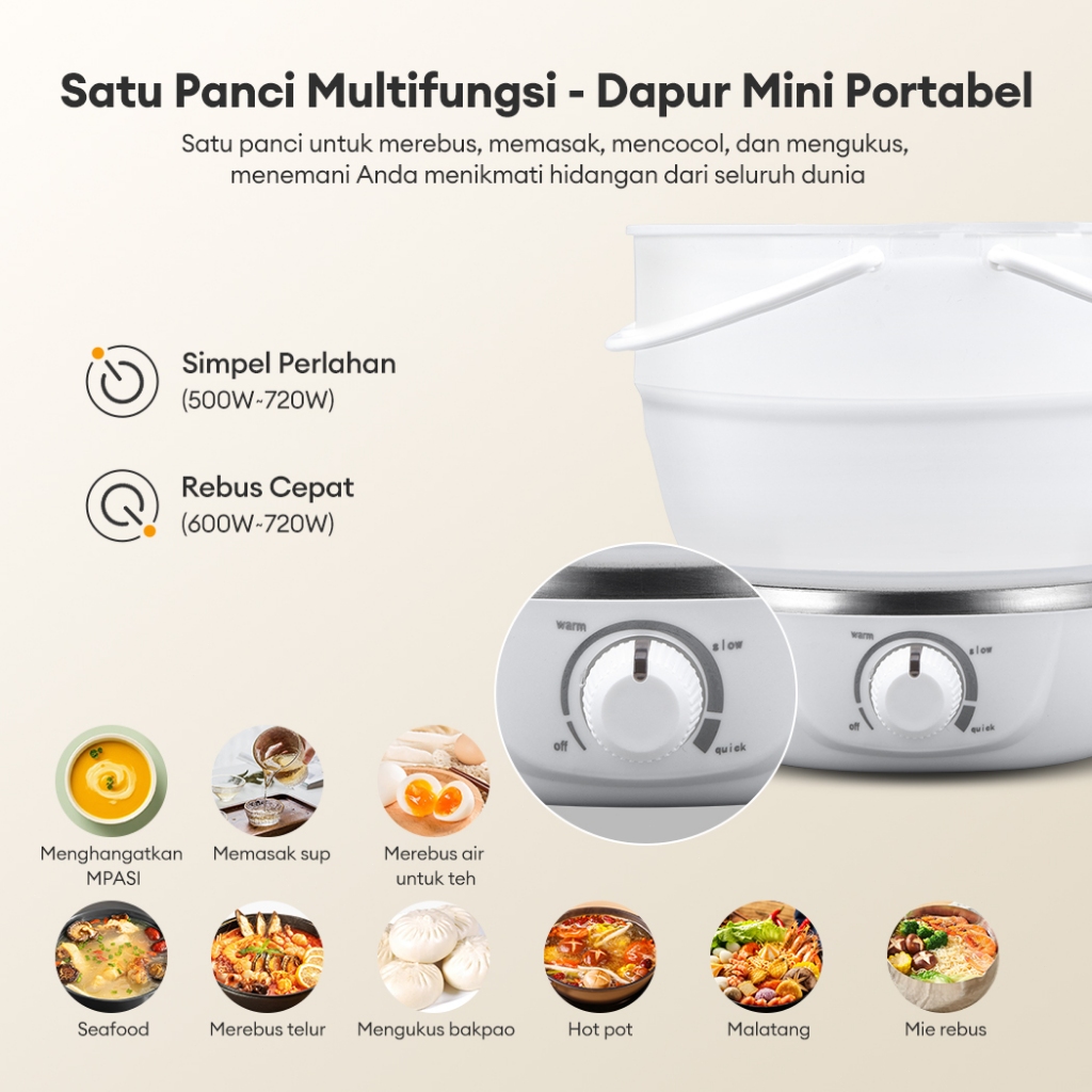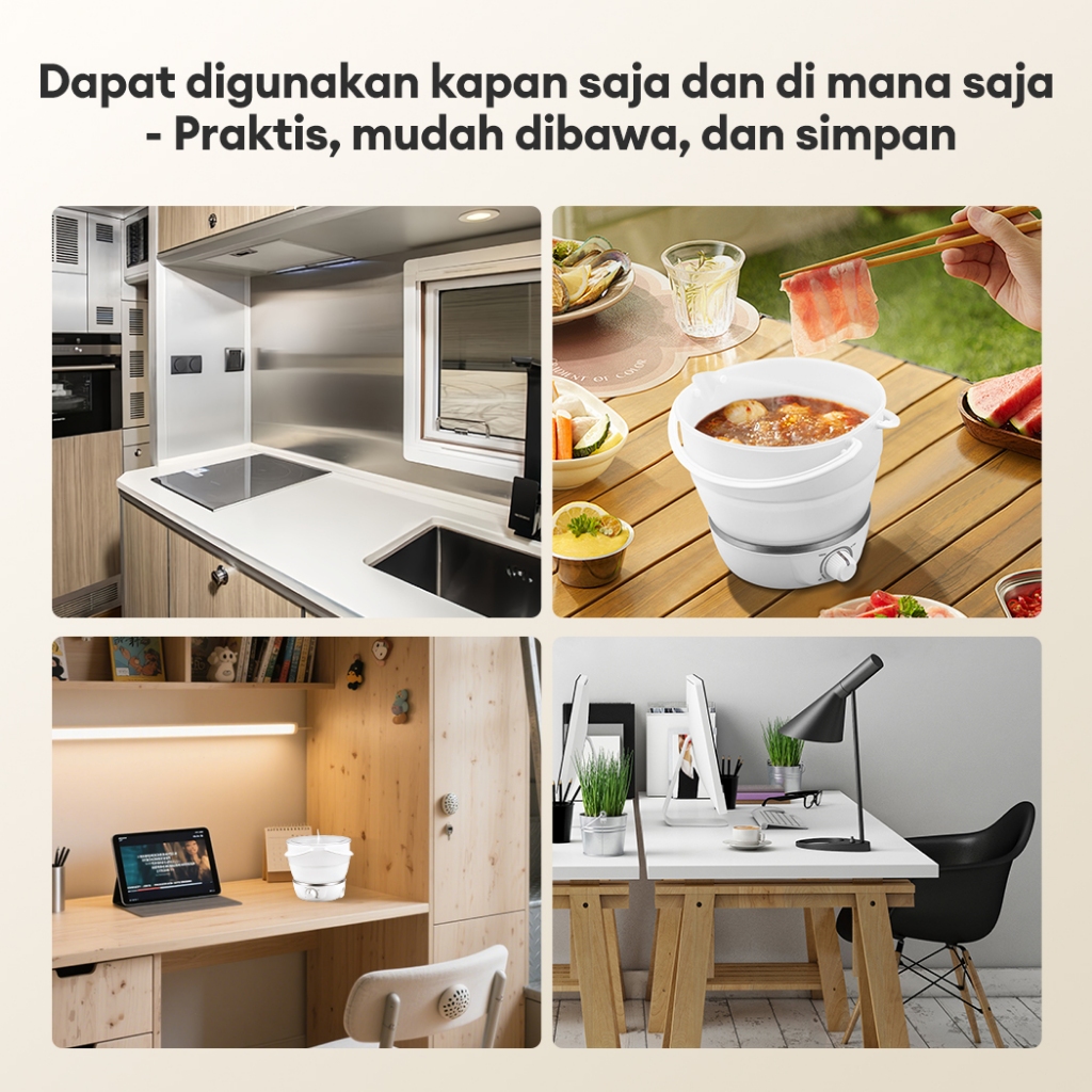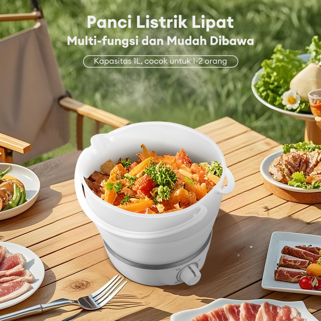 JVJH Panci Listrik Lipat 1L Multifungsi Rice Cooker Mini Penanak Nasi Portable Bisa Dilipat Magic Com Untuk Rumah & Luar Ruangan
