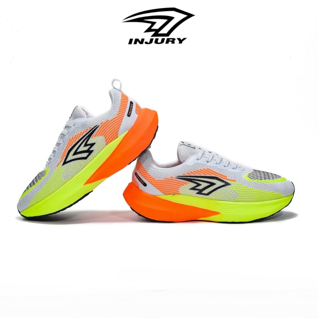 Injury - Sepatu Running Unisex Estevao Sonic 1 Sepatu Lari Pria Wanita White Stabilo Oren