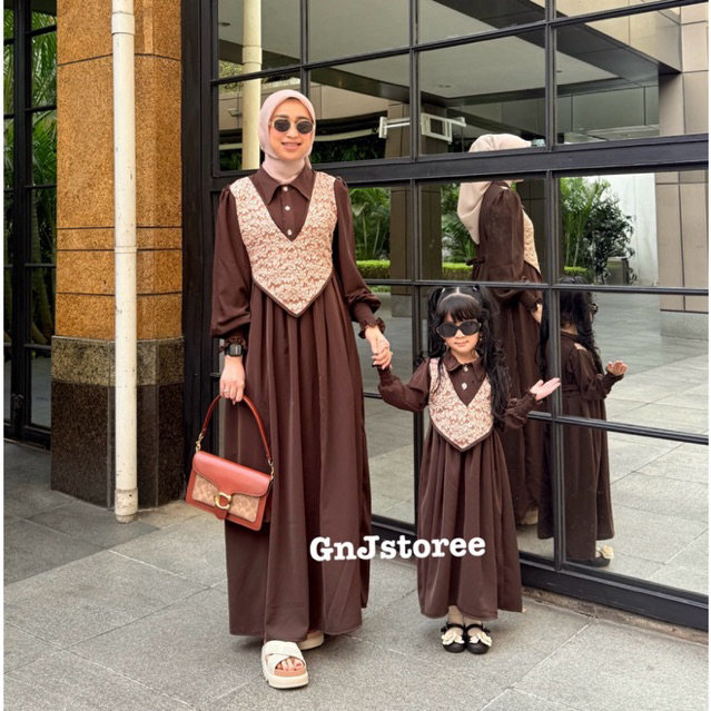 gamis couple ibu dan anak Gnj MOANA - Gamis Couple Ibu dan Anak Perempuan (DIJUALSATUAN) Gamis Mewah