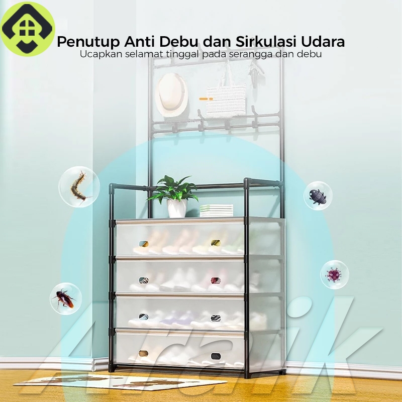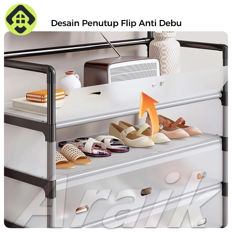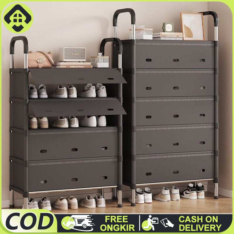 SALVO 65CM Rak Sepatu Susun Tertutup Tahan Debu Rak Sepatu Besi Kuat Tebal Kokoh Rak Tas Serbaguna