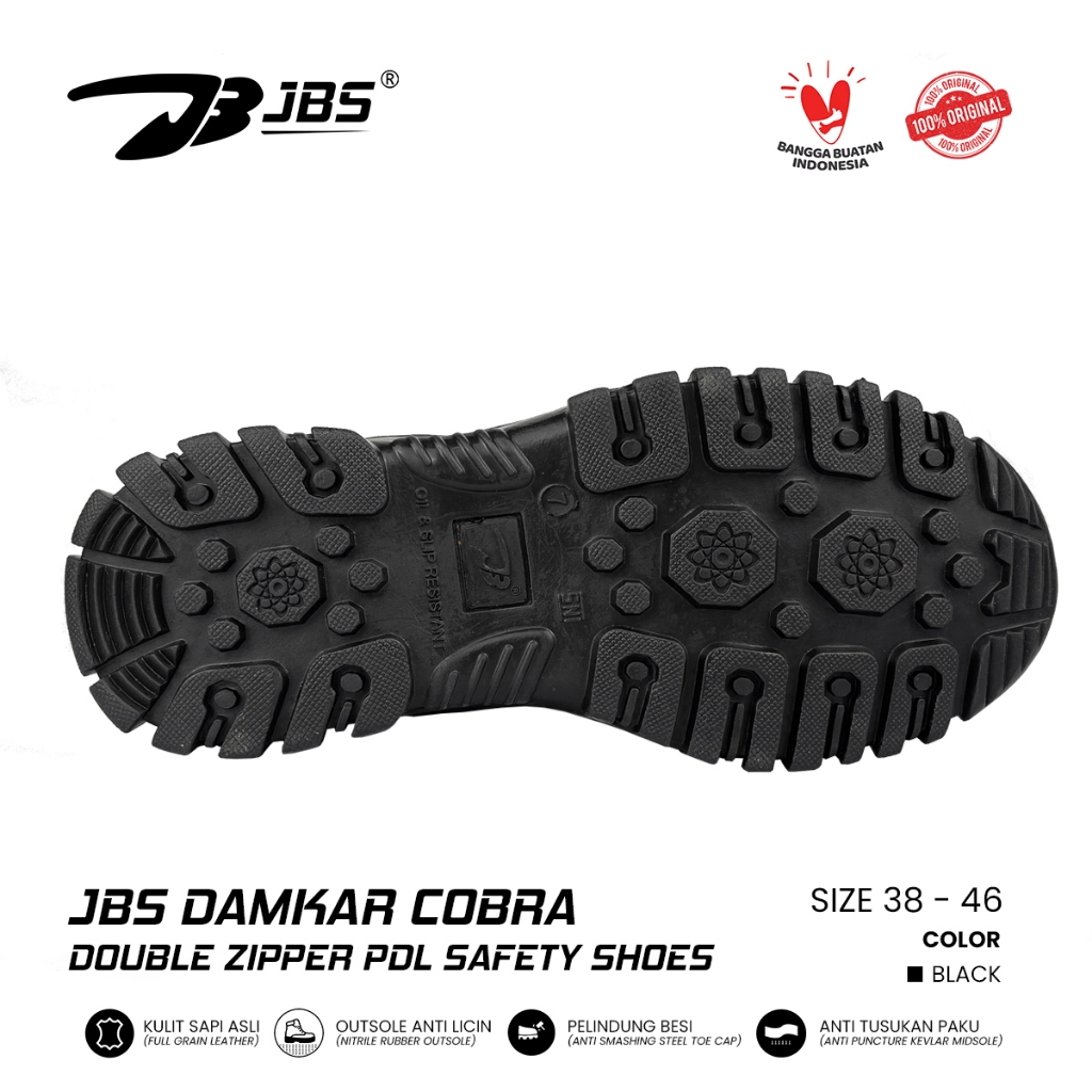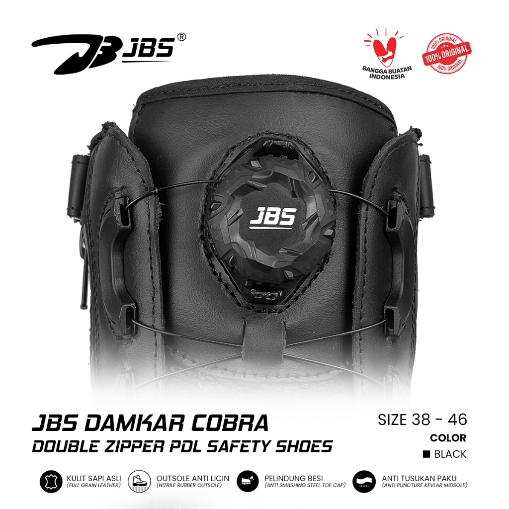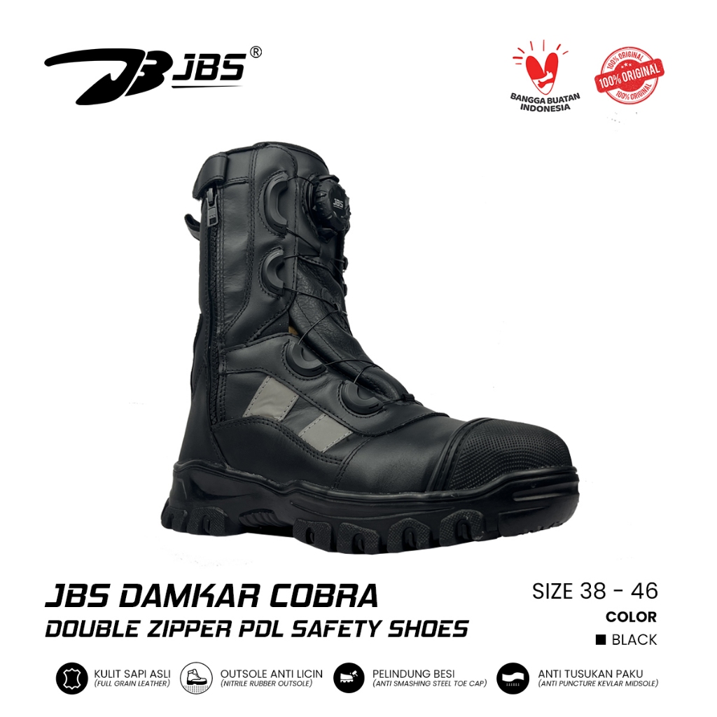 Sepatu JBS Damkar Cobra Double Zipper Tali Putar Sepatu Boot Tactical Military Hitam List Putih PDL Terbaru