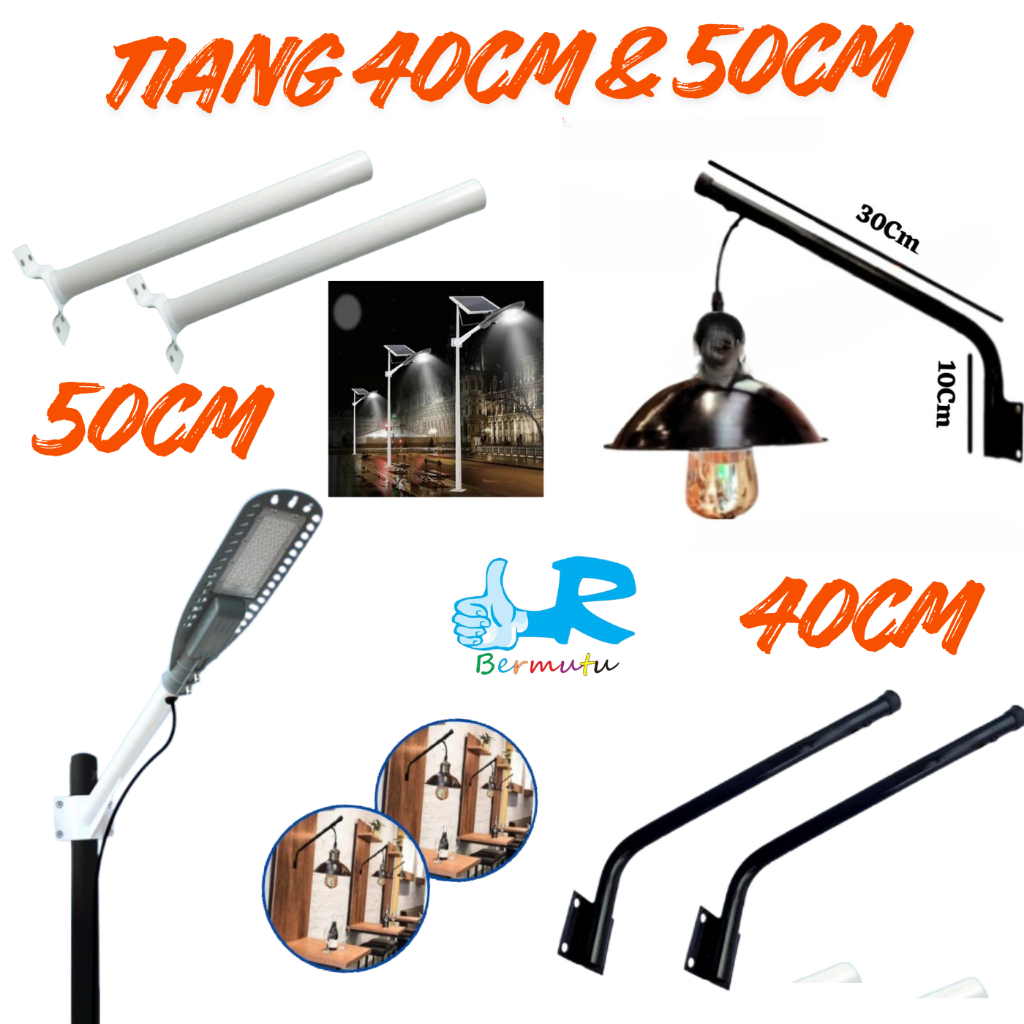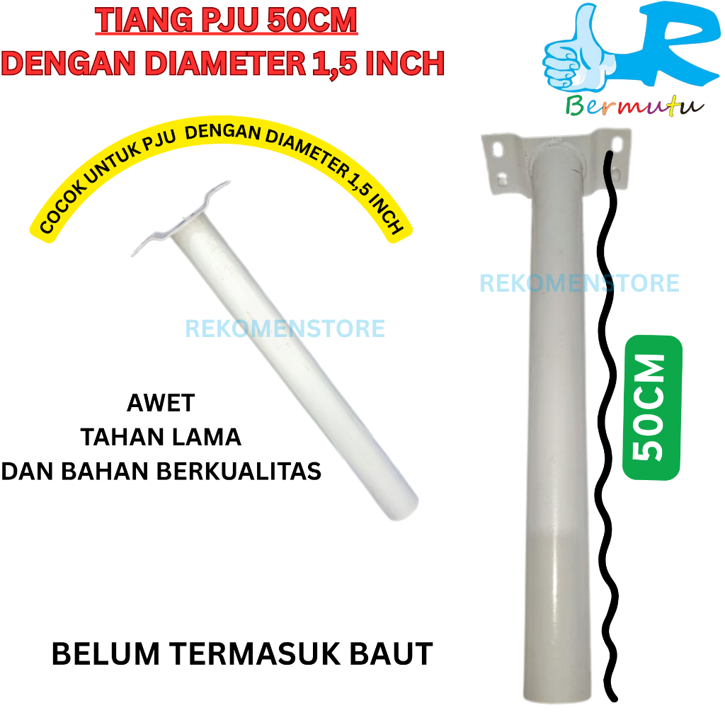 Tiang Besi Lampu Jalan 50cm + Baut 1.5 inch Tiang Besi PJU Putih Kap WD Hitam Tiang WD 40cm