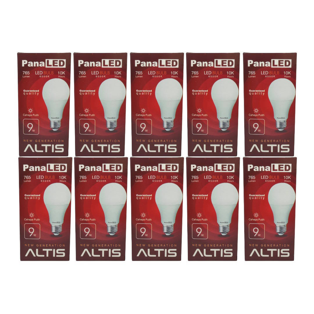 Paket Lampu Grosir Led Panaled Altis 9 Watt Cahaya Putih Bohlam Bulb Per Pack Isi 10 Pcs Classic