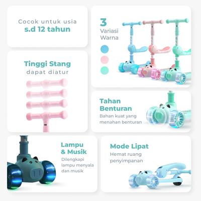 Scooter Listrik Anak Kidzu - Skuter Otoped Listrik Anak - Pink New Versi