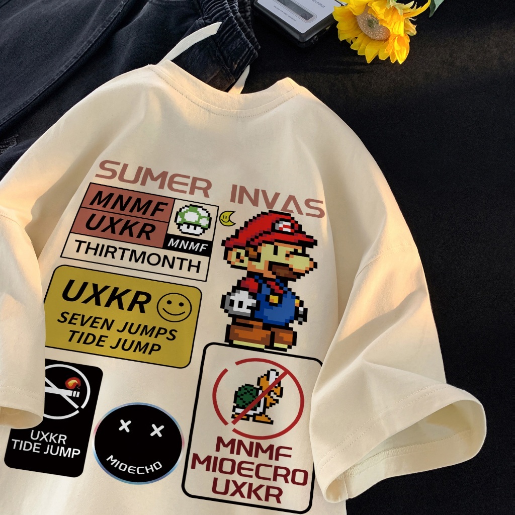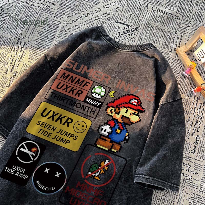 Yesgirl Baju Kaos Washed Hitam Cowok Asli 100 PERSEN Laki Laki T-Shirt Unisex Retro Street Style-Kaos Lengan Pendek Pakaian P