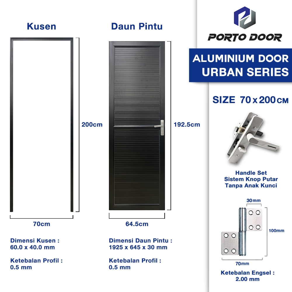 Porto Door Urban Series PINTU ALUMUNIUM / PINTU KAMAR MANDI 70 X 200 CM