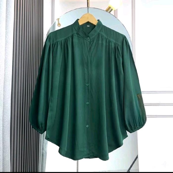 Amena Blouse Kemeja Wanita Rayon Twill Atasan Wanita Kekinian Baju Cewek Dewasa - Am. Hitam, Size L ( Ld 110 Cm )