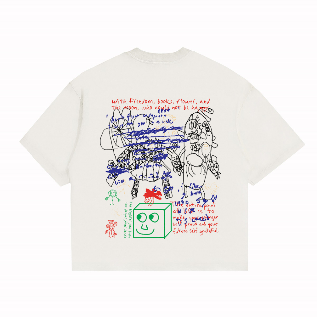 Onoma Katun Bangkok - Boxy Oversized Tshirt Doodle Beast White - Kaos
