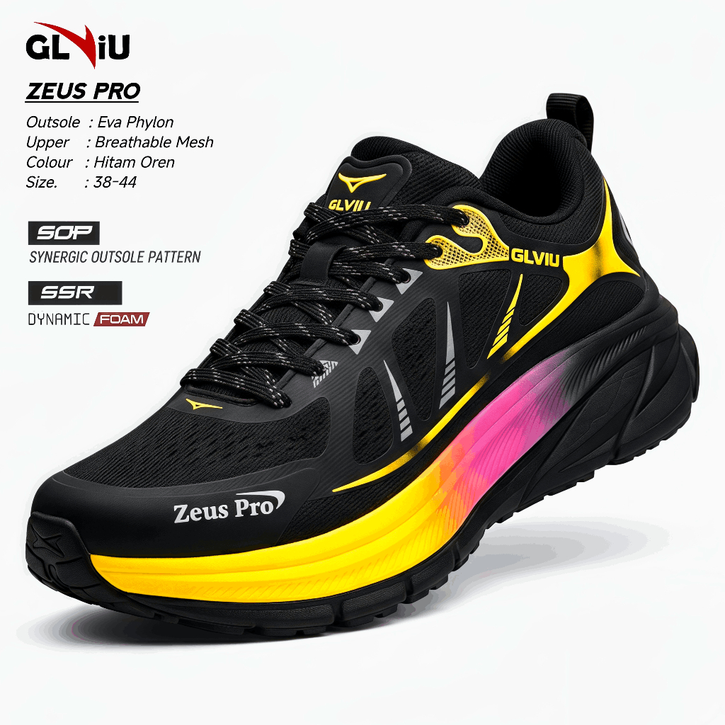 GLVIU Zeus Pro Sepatu Lari Pria Wanita Size 38-44 Sepatu Running Olahraga Joging Casual - Hitam Oren
