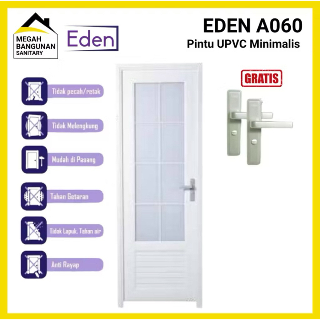 Eden Pintu Kamar Mandi UPVC Eden Joice A060 Pintu Putih Minimalis 70x198 CM