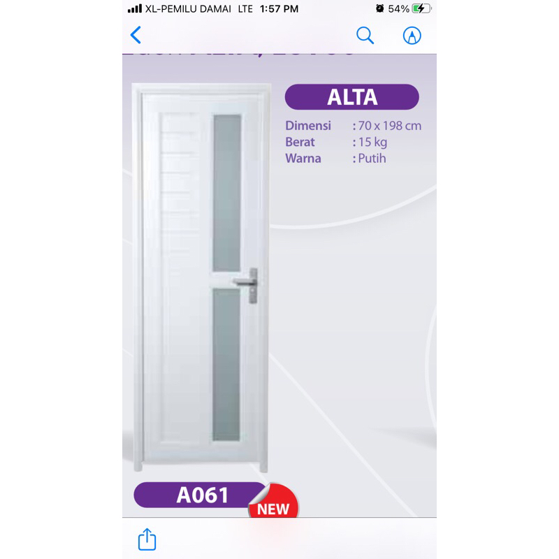 PINTU UPVC EDEN joice UPVC DOOR pintu upvc model baru kaca bingkai ukuran 70x195cm tebal putih hitam anti panas urat kay
