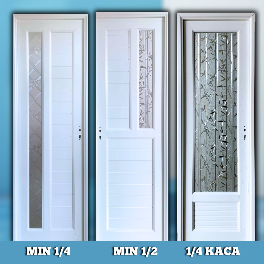 [UPVC] Pintu Kamar Mandi uPVC Kaca 8 | Full Panel | Elegan Putih | Pintu WC Estetik [UPVC-01]