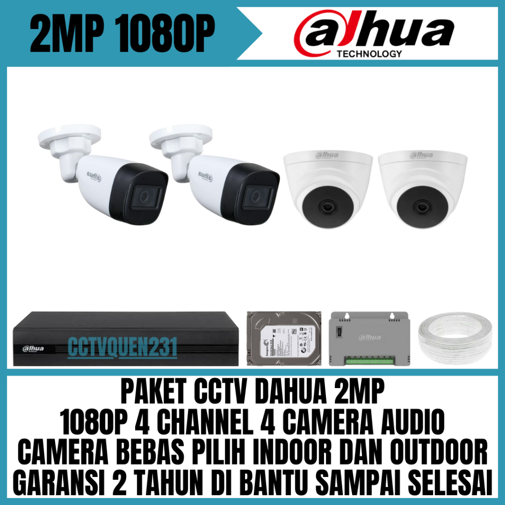 PAKET CCTV DAHUA 4 CHANNEL 4 CAMERA 2MP 1080P TURBO HDCVI AUDIO SERIES KAMERA CCTV