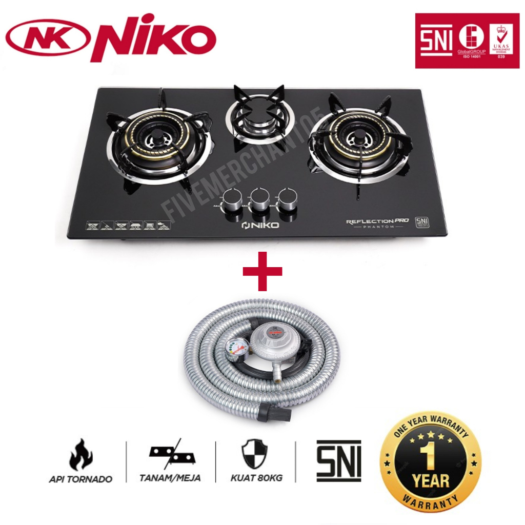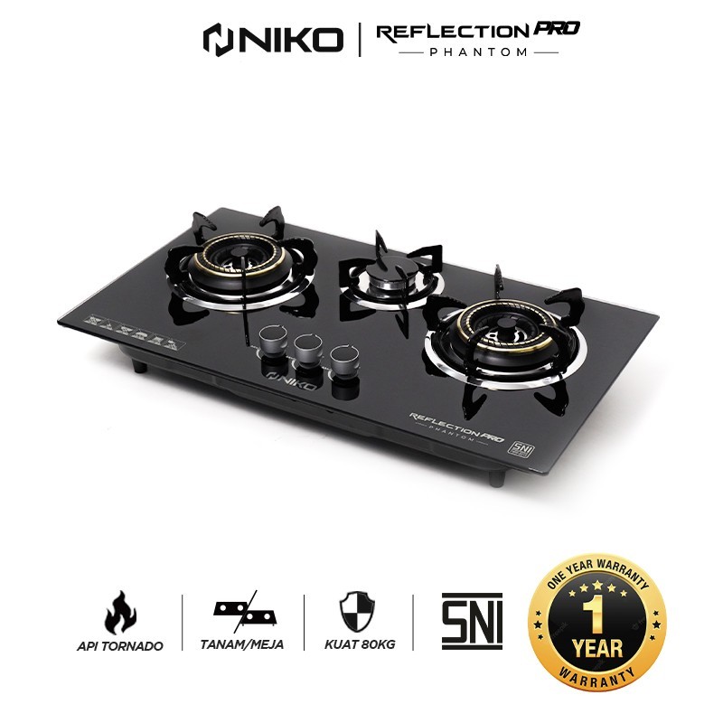 KOMPOR TANAM NIKO REFLECTION PRO PHANTOM 3 TUNGKU KACA STOVE BUILT IN HOB TEMPERRED GLASS GARANSI KOMPOR GAS 1 TUNGKU