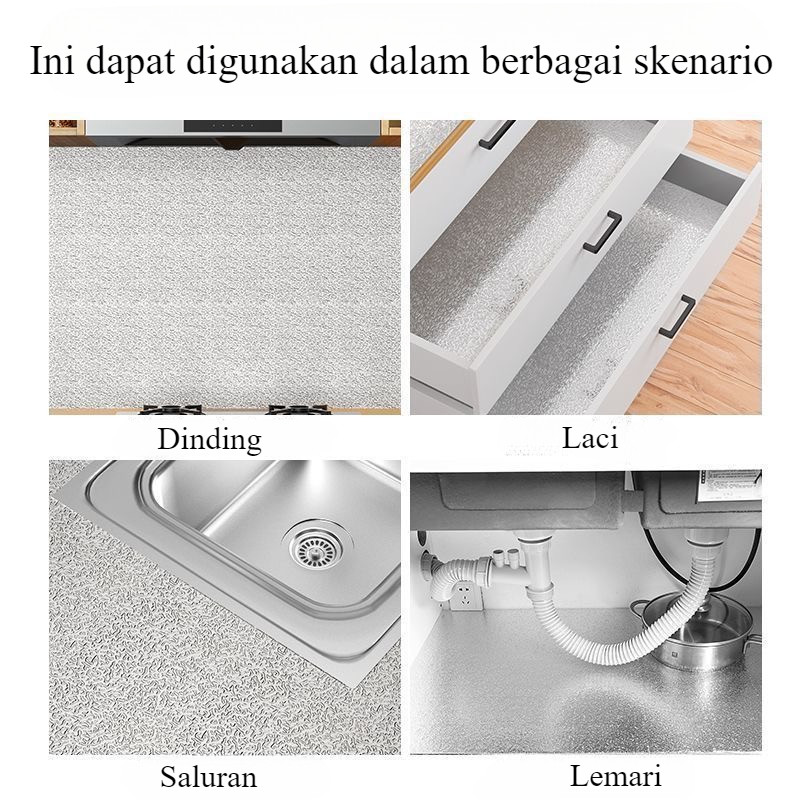 Stiker Aluminium Foil 60cm X 3m / Wallpaper Anti Minyak Waterproof / Wallpaper Dapur Aluminum Foil